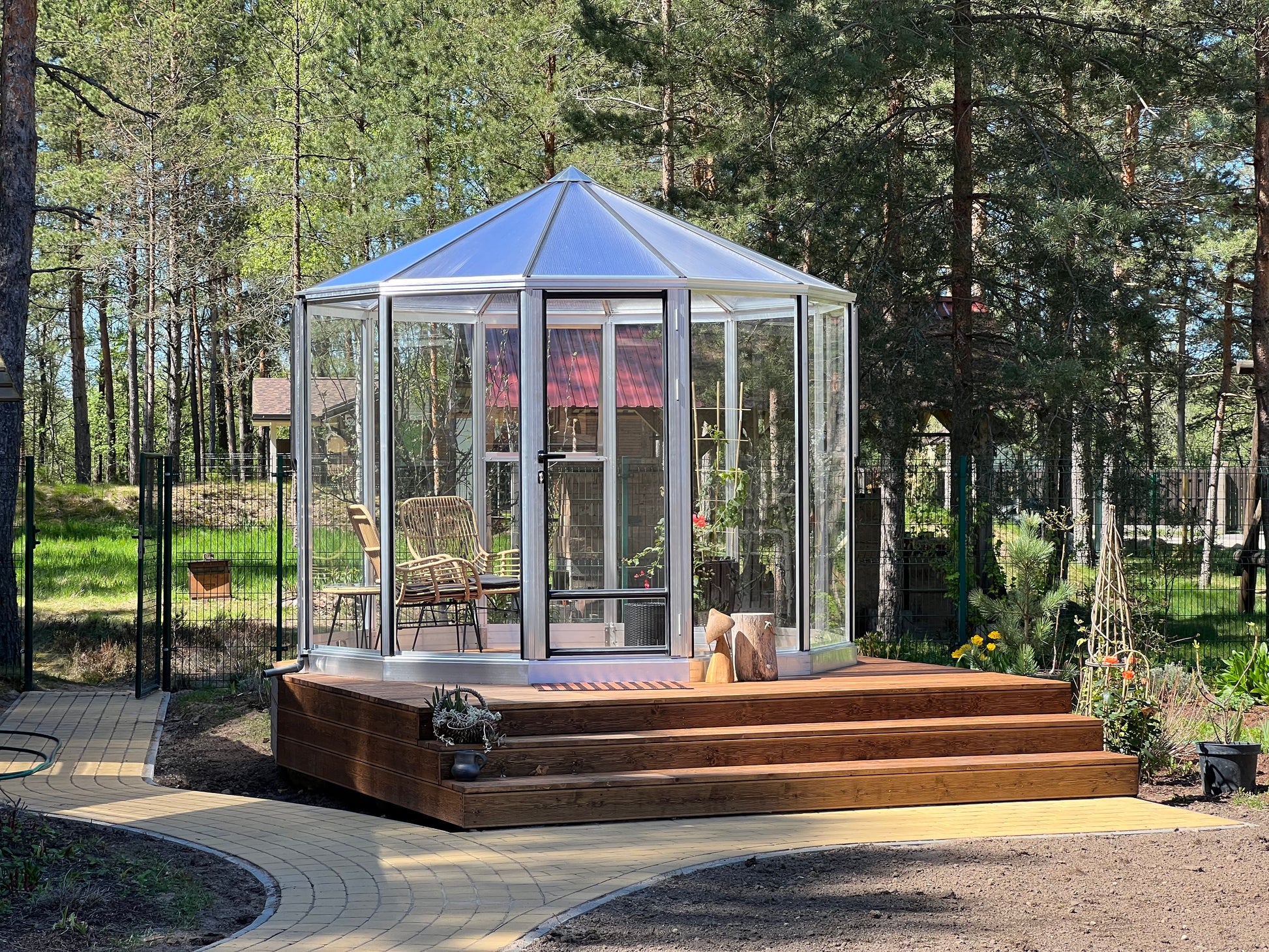 Features: Enjoy panoramic 360° views and a striking sunburst roof rafter design, which allows abundant natural light to flood the interior, creating an ideal environment for plants and people alike.
