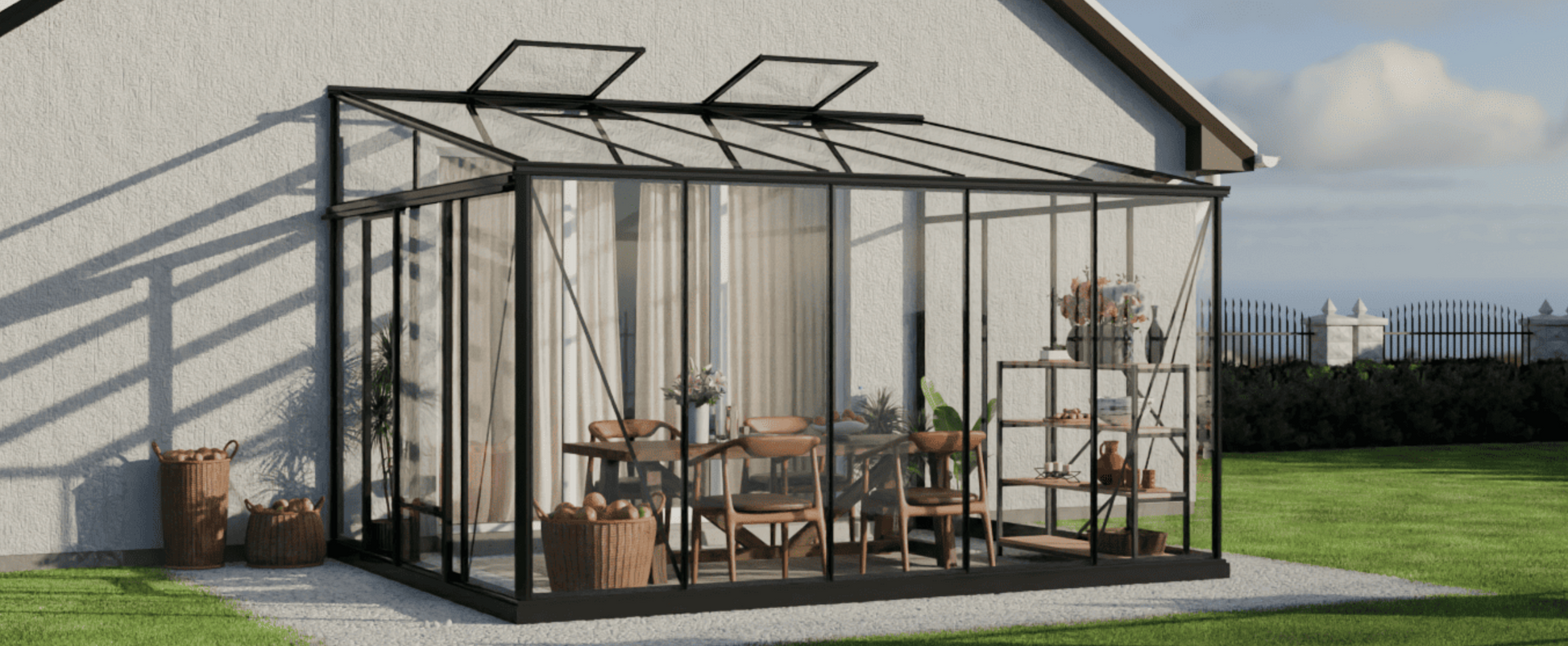 Product Design: Featuring a single-pitched, three-sided structure, HORTUS seamlessly attaches to existing buildingssuch as houses, garages, sheds, or terraces, creating a stylish and functional extension of your property.