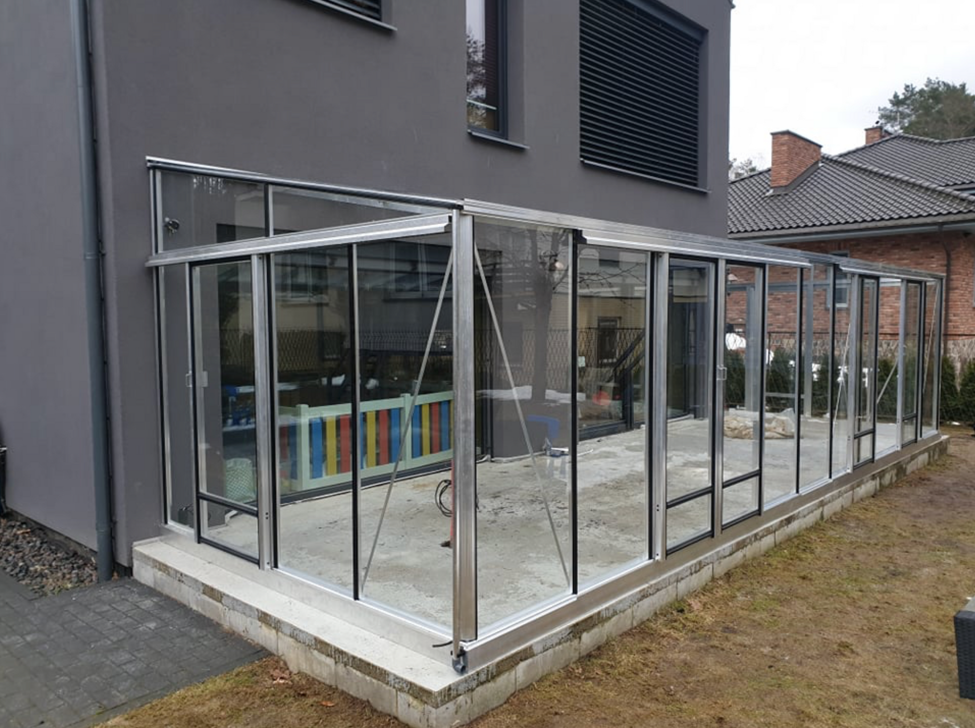 Glazing: glass (4 mm, tempered, clear) or/and polycarbonate (10 mm, twin-wall, clear)