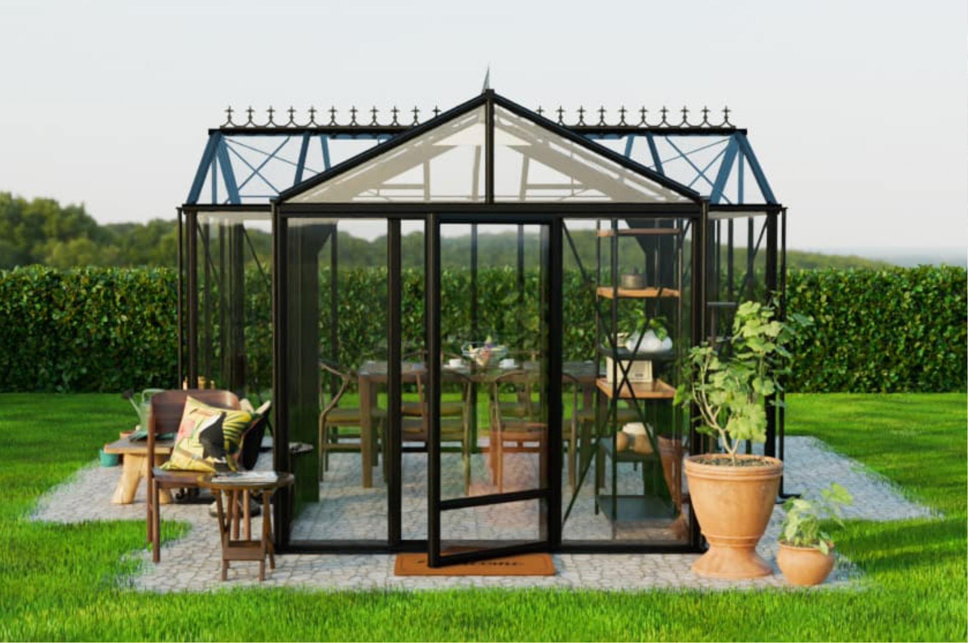 For enhanced comfort and usability, additional or double doors improve access and airflow, while roof or wall windowsensure optimal ventilation and a pleasant indoor climate during warm summer days. Decorative roof ridge cresting can be added to further elevate the elegance and character of the structure.