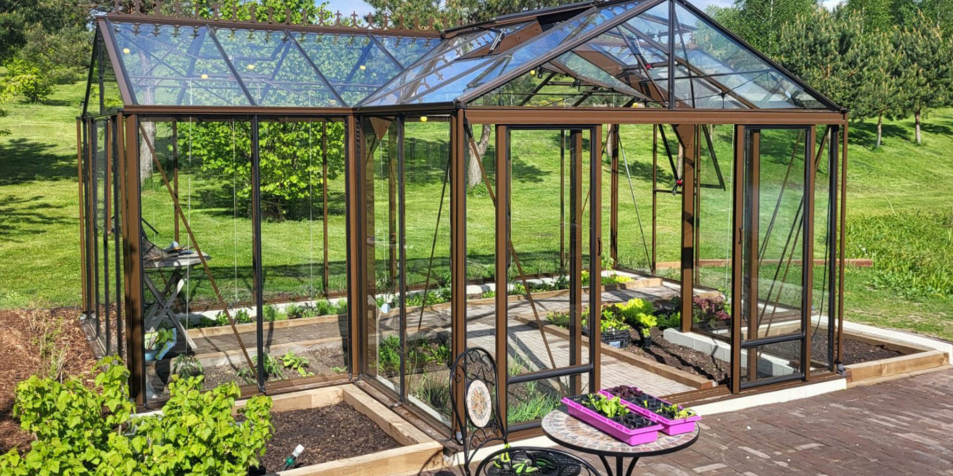 Enhancement Options: For enhanced comfort, ventilation, and aesthetic appeal, additional doors, windows, and decorative roof cresting can be incorporated, allowing you to customize the greenhouse to your lifestyle and outdoor environment.